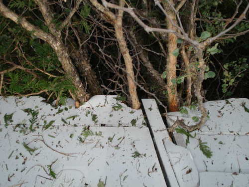 Toe hy homself nou staan en vas ry by ‘n “dead-end” probeer die mak koeie om te reverse deur vol “reverse-thrust” te gooi. Mooi man ! Hy ry toe sy wiele van die concrete af. Ek neem aan dit is nie ‘n goeie ding nie.