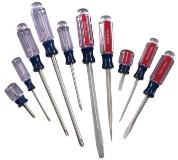 PHILLIPS SCREWDRIVER: Normally used to stab the vacuum seals under lids, opening old-style paper-and-tin oil cans and splashing oil on your shirt; but can also be used, as the name implies, to strip out Phillips screw heads. Women excel at using this tool.