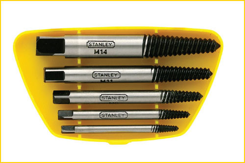 E-Z OUT BOLT AND STUD EXTRACTOR: A tool ten times harder than any known drill bit that snaps neatly off in bolt holes thereby ending any possible future use.