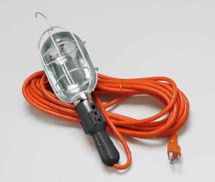 TROUBLE LIGHT: The home mechanic’s own tanning booth. Sometimes called a drop light, it is a good source of vitamin D, “the sunshine vitamin,” which is not otherwise found under cars at night. Health benefits aside, its main purpose is to consume 40-watt light bulbs at about the same rate that 105mm howitzer shells might be used during, say, the first few hours of the Battle of the Bulge. More often dark than light, its name is somewhat misleading. The accessory socket within the base, has been permanently rendered useless, unless requiring a source of 117vac power to shock the mechanic senseless.