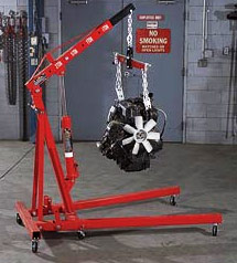 TWO-TON ENGINE HOIST: A tool for testing the maximum tensile strength of everything you forgot to disconnect.