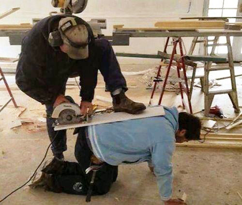 TABLE SAW: A large stationary power tool commonly used to launch wood projectiles for testing wall integrity.